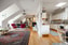 Köket är klassiskt och välplanerat med mängder av förvaring, gott om arbetsyta och naturligt ljus från takfönster. Intill ligger den mysiga matplatsen som bjuder på utsikt över takåsarna och från hallen har du utgång till den privata uteplatsen – en perfekt förlängning av bostaden under årets varmare månader.