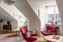 Den öppna dispositionen mellan kök, matplats och vardagsrum skapar en härlig rymd och gör hemmet perfekt både för umgänge och för stilla vardag. Det stora vardagsrummet, med synliga takbjälkar och flera fönsterkupor, ramas in av breda golvytor och naturligt ljus från flera väderstreck. Här ryms flera möbleringsalternativ, sociala sittgrupper och en generös bibliotekshörna.