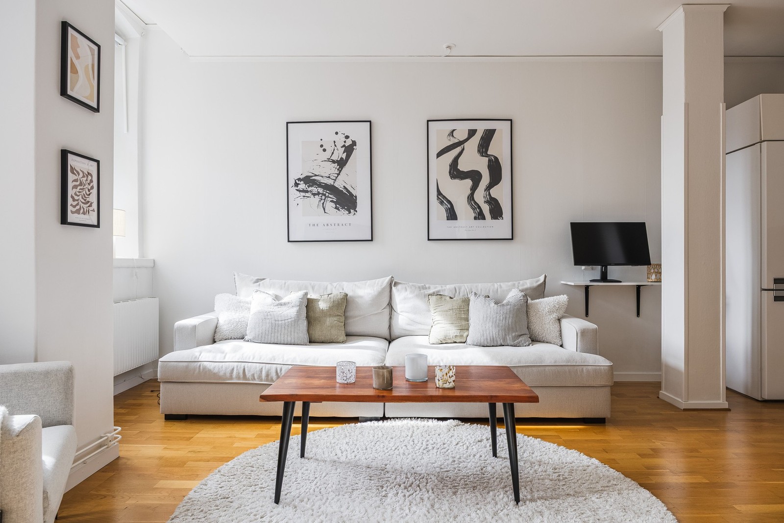 Bostaden bjuder på en ljus och harmonisk känsla redan från hallen, där varje kvadratmeter är smart utnyttjad. Den öppna planlösningen mellan kök och vardagsrum skapar en social och inbjudande yta, perfekt för såväl vardagsliv som middagsbjudningar. De stora fönsterpartierna släpper in ett generöst ljusflöde och ramar in den stilrena interiören med parkettgolv och sobra färgval. Badrummet är rymligt och fräscht, med gott om förvaring och en stilren helhet. Sovrummet erbjuder både lugn och komfort – en plats att verkligen koppla av på, med riklig förvaring och rofylld atmosfär.