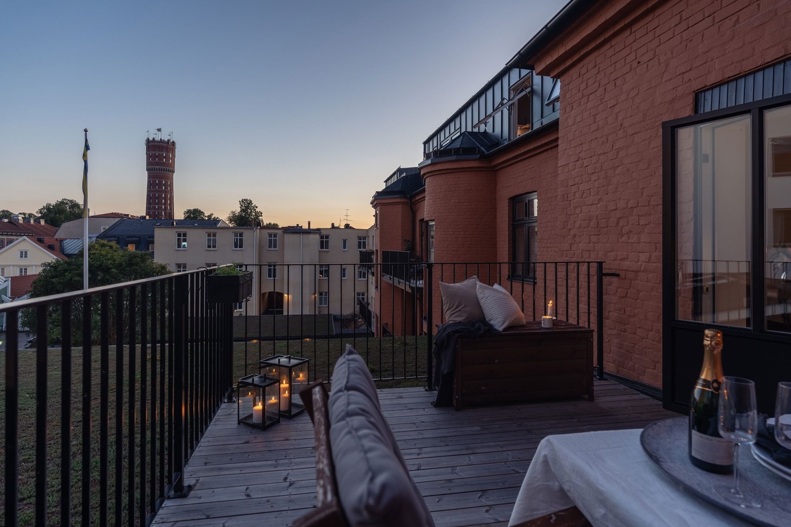 Totalrenoverad citylägenhet på Kvarnholmen med stor terrass i kvällssol