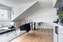 Rakt fram kommer det delvis kaklade badrummet som är i gott skick och i väl tilltagen storlek. Här erbjuds ett fint takfönster och utrustning i form av WC, dusch med glasväggar, kommod med handfat, badrumsskåp och kombinerad tvättmaskin/torktumlare.