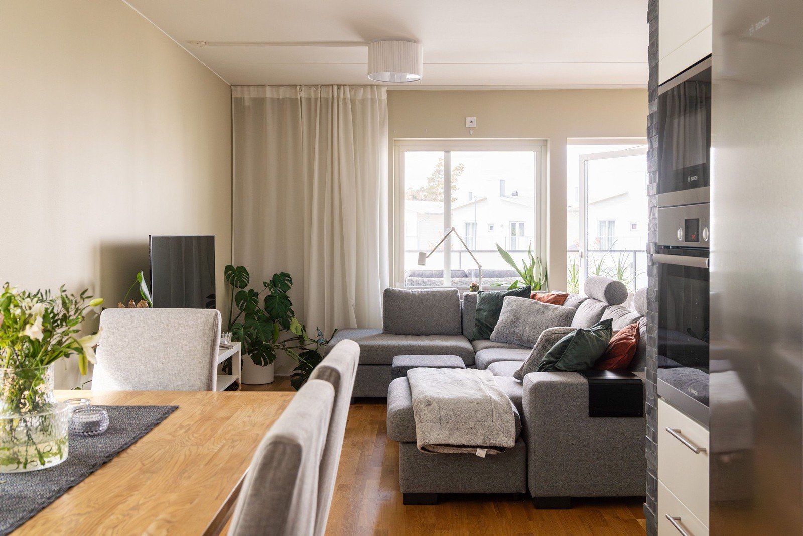 Husen stod klara 2017 och säljarna har tagit hand om lägenheten på ett utmärkt sätt, allt känns fortfarande fräscht och nytt. Vid ingången möts du av en smakfullt inredd hall som leder dig in i detta välkomnande hem. Den öppna planlösningen skapar en sömlös övergång mellan olika delar av bostaden. I anslutning till hallen ligger två tilltagna sovrum som även är taktiskt placerade i närheten av det helkaklade badrummet som är i mycket bra storlek. Utöver det erbjuder badrummet utmärkta avlastningsytor och förvaring. Det stora vardagsrummet som smidigt övergår i det generösa köket, utgör hjärtat i denna bostad. Här kan värdskapet blomstra, och det finns gott om plats för vännernas skratt och familjens mysiga stunder. Stora fönster sträcker sig längs två väderstreck, vilket ger en harmonisk balans av naturligt ljus som flödar rikt i rummet. Från vardagsrummet leder en glasdörr ut till den soliga balkongen, en privat utomhusoas som lockar med sina soliga timmar och en fantastisk utsikt. Här kan du njuta av frukostar eller avkopplande grillkvällar i gott sällskap. Lägenhetens största sovrum nås via vardagsrummet och erbjuder utmärkt garderobsförvaring.