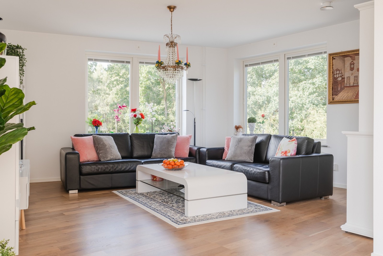 Vardagsrummet är både luftigt och inbjudande. Det finns plats för stora sällskapsmöblemang och fönster i två väderstreck. Mellan kök och vardagsrum finns utgång till den egna terrassen som ger plats för större matgrupp, lounge möbel och/eller fler utemöbler.