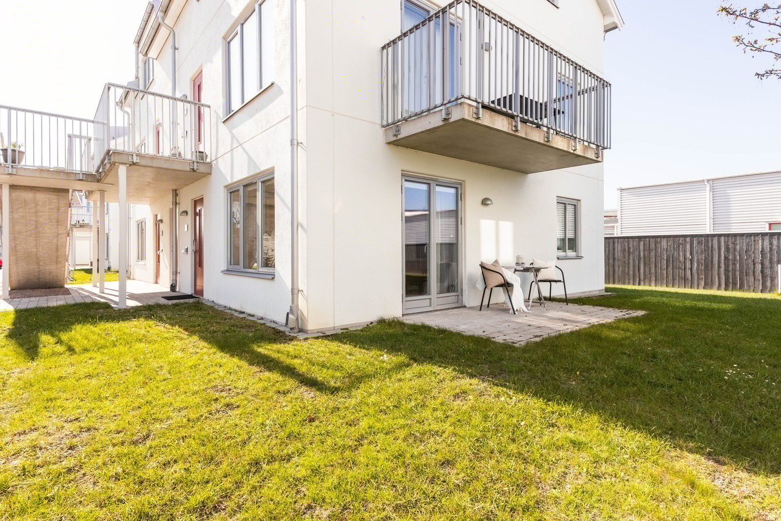 Modern tvåa i markplan med egen uteplats och ljusinsläpp från tre håll