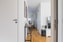 På golvet har du ekparkett, likadana golv löper enhetligt vidare i resten av lägenheten. Spotlights i taket. Plats för ytterkläder och skor. Under trappan finns ytterligare förvaringsmöjligheter i ett litet förråd.