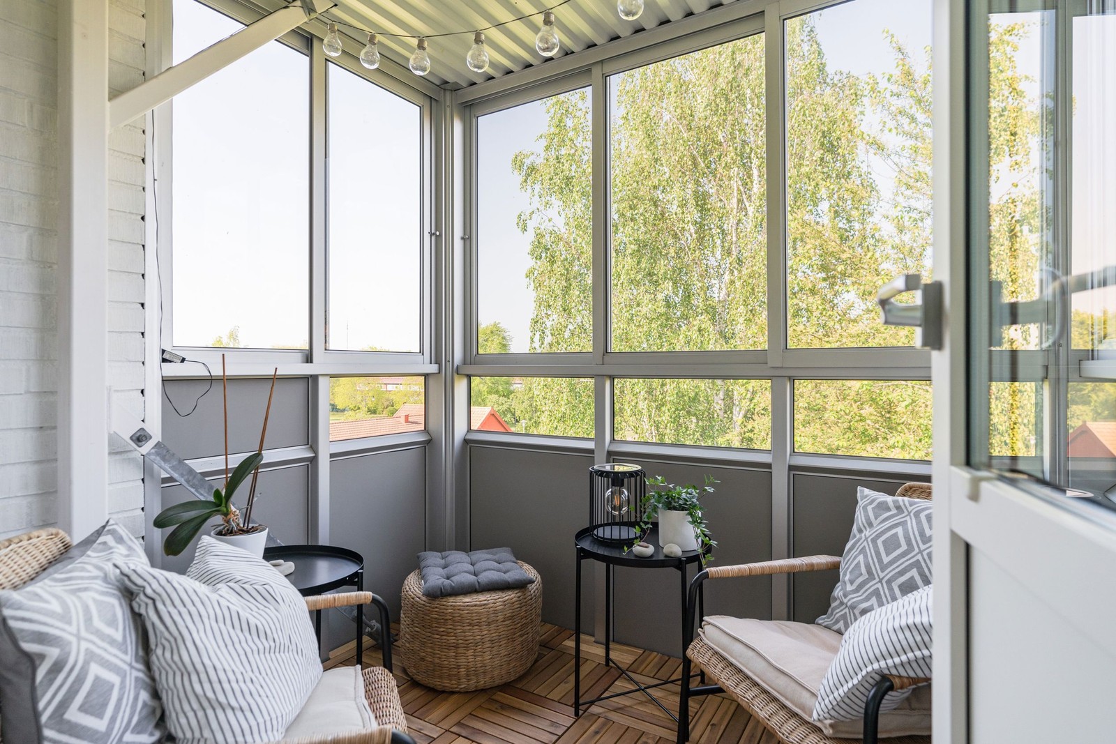 Via vardagsrummet nås den soliga balkongen med föreningens bästa läge. Här har du fin och vacker grönska som utsikt vilket gör att det känns och är väldigt privat.
