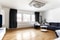 Vardagsrummet är rymligt och lätt att möblera. Härifrån når vi även uteplatsen och trädgården på baksidan.