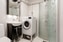 Det helkaklade badrummet nås även det via hallen och är utrustat med dusch, toalett, handfat och tvättmaskin.