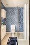 Det stora badrummet är utrustat med badkar, wc och handfat – perfekt för familjens behov.