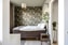 Köket är modernt och funktionellt med vita, blanka luckor, gott om arbetsyta och snyggt kakel i klassiskt format. Den maskinella utrustningen består av spis med häll, fläkt, kyl/frys och diskmaskin – allt du behöver för att vardagen ska flyta smidigt. Fönstret vetter mot grönska och ger ett behagligt ljus över den stilrena inredningen. Sovrummet är en riktig pärla med en tapet som ger rummet karaktär och värme. Här finns plats för dubbelsäng och smart förvaring. De naturnära tonerna och den vackra fondväggen skapar en rofylld känsla som gör det lätt att koppla av. Badrummet är yteffektivt och fräscht med duschhörna med glasväggar, toalett, handfat och förvaringsmöjligheter. Det är dessutom förberett för tvättmaskin – alternativt har du tillgång till den gemensamma tvättstugan i huset.