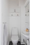 Via hallen når du den praktiska gäst-wc:n som är utrustad med toalett, handfat med tillhörande kommod och spegel.