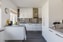 Direkt till höger om hallen når du köket som går i stilrent vitt och bjuder på bra arbetsyta, goda förvaringsmöjligheter och praktisk köksö. Köket är utrustat med spishäll, fläkt, integrerad diskmaskin, kyl och fyrs samt inbyggd mikrovågsugn och ugn. Här finns också plats för större matgrupp, som bjuder in till härliga middagar med familj och vänner.