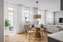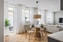 Köket är stilrent och modernt i en sober grå ton. Här erbjuds gott om arbetsyta på bänkskiva i ljus komposit samt full maskinpark med allt du behöver. Placeringen mot rummet gör att du har kontakt med både middagsgäster och vardagsrummet medan du lagar mat. Intill köket ryms en naturlig plats för matbord – perfekt för långfrukostar och middagar i gott sällskap. Vardagsrumsdelen är luftig och lättmöblerad med plats för både soffgrupp och mediamöbel. De stora fönsterpartierna ger rummet en fantastisk rymd och ljushet.