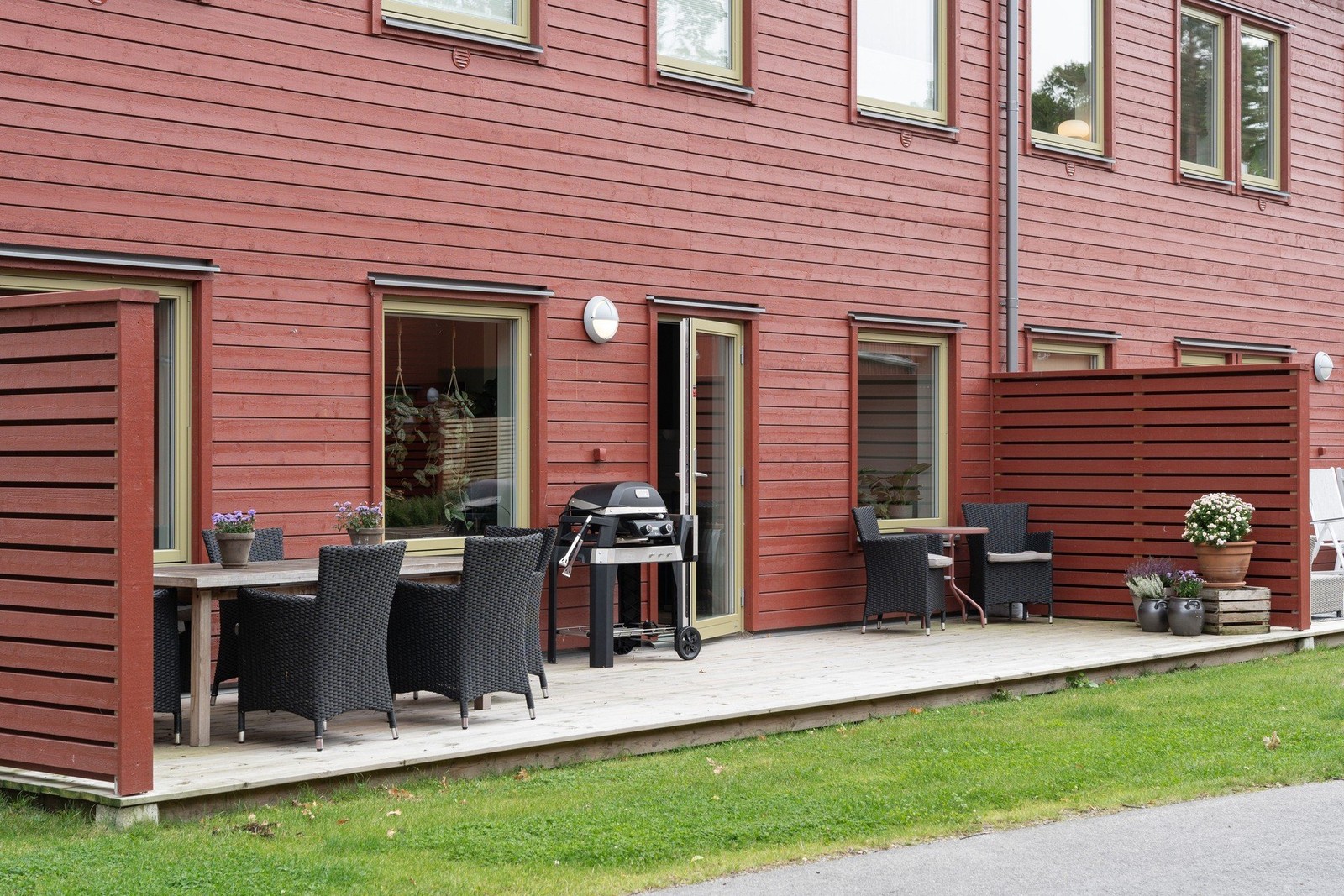 Lägenheten har två uteplatser, en vid entren samt en som nås via vardagsrummet.