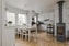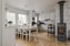 Köket är ljust och välkomnande med vit inredning. Här finns gott om plats för ett matbord framför fönsterpartiet. Planlösningen gör att köket ligger avskilt från vardagsrummet men ändå i nära kontakt med de öppna sällskapsytorna. Det ger en skön balans mellan lugn arbetsro och närhet till resten av hemmet. Köket är utrustat med inbyggd ugn och mikrovågsugn, spishäll, spisfläkt, diskmaskin samt kyl och frys i fullhöjd. Från köket når ni även passagen vidare till tvättstugan och groventrén.