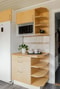 Köket nås direkt från hallen och har en ljus och trivsam inredning med gott om både förvaring och arbetsyta. Här finns plats för ett matbord vid fönstret och rummets planering gör det enkelt att både laga mat och umgås. Den maskinella utrustningen är väl tilltagen och består av ugn med spishäll, spisfläkt, diskmaskin samt kyl och frys i fullhöjd. Från köket finns en passage vidare till tvättstugan och groventrén.