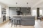 Här kliver ni in i ett kök där form och funktion samspelar på ett naturligt sätt. Den grå köksinredningen ger rummet ett stilrent och lugnt uttryck. Den stora köksön erbjuder gott om arbetsyta, smart förvaring och sittplatser. Den genomtänkta planlösningen skapar en naturlig rörelse in mot vardagsrummet. Köket är fullt utrustat med spishäll och inbyggd fläkt, inbyggd ugn och mikrovågsugn, integrerad kyl och frys samt diskmaskin.