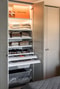 Förrådet har byggts om till en walk-in closet och en garderobsvägg har monterats i sovrummet.