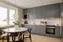 Stilrent och välplanerat kök med grå köksluckor i tidlös design som elegant kombineras med en ljus bänkskiva. Det ljusa golvet samspelar fint med väggar i en behaglig kulör och bidrar till en harmonisk helhet. Ovan arbetsytorna sitter vitt kakel som ger ett fräscht intryck, och vitvarorna är genomgående i rostfritt utförande. Köket är fullt utrustat med häll, integrerad köksfläkt och diskmaskin, inbyggd ugn och mikro. samt kyl och frys i fullhöjd.