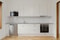 Ett rymligt kök med bra förvaring. Luckorna kommer i vitt utförande med en grå bänkskiva i laminat samt ett vitt stänkskydd i kakel. Den maskinella utrustningen är ugn, spis, diskmaskin, mikro, fläkt, kyl samt frys. Golvet är parkett och följer med i resterande rum i bostaden.