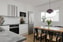 Köket är stilrent utformat och följer en elegant vit linje som skapar en tidlös och harmonisk helhet. Den vita skåpsinredningen samspelar fint med en grå bänkskiva och vitt kakel – en smakfull kombination som ger köket både karaktär och lugn. Den maskinella utrustningen är komplett med induktionshäll, spisfläkt, ugn, inbyggd mikrovågsugn samt integrerad diskmaskin. Den kombinerade kyl och frysen i rostfritt utförande tillför en modern kontrast. I köket finns en trevlig matplats med plats för ett matbord, vilket gör köket till en naturlig samlingspunkt för både vardag och umgänge.