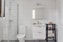Badrummet har en trevlig färgton i vitt. Golvet är i en mörkare nyans och matchar fint mot de vita kaklet på väggarna. Här erbjuds WC, dusch, handfat med komodd, spegel, tvättmaskin, torktumlare samt förvaring.