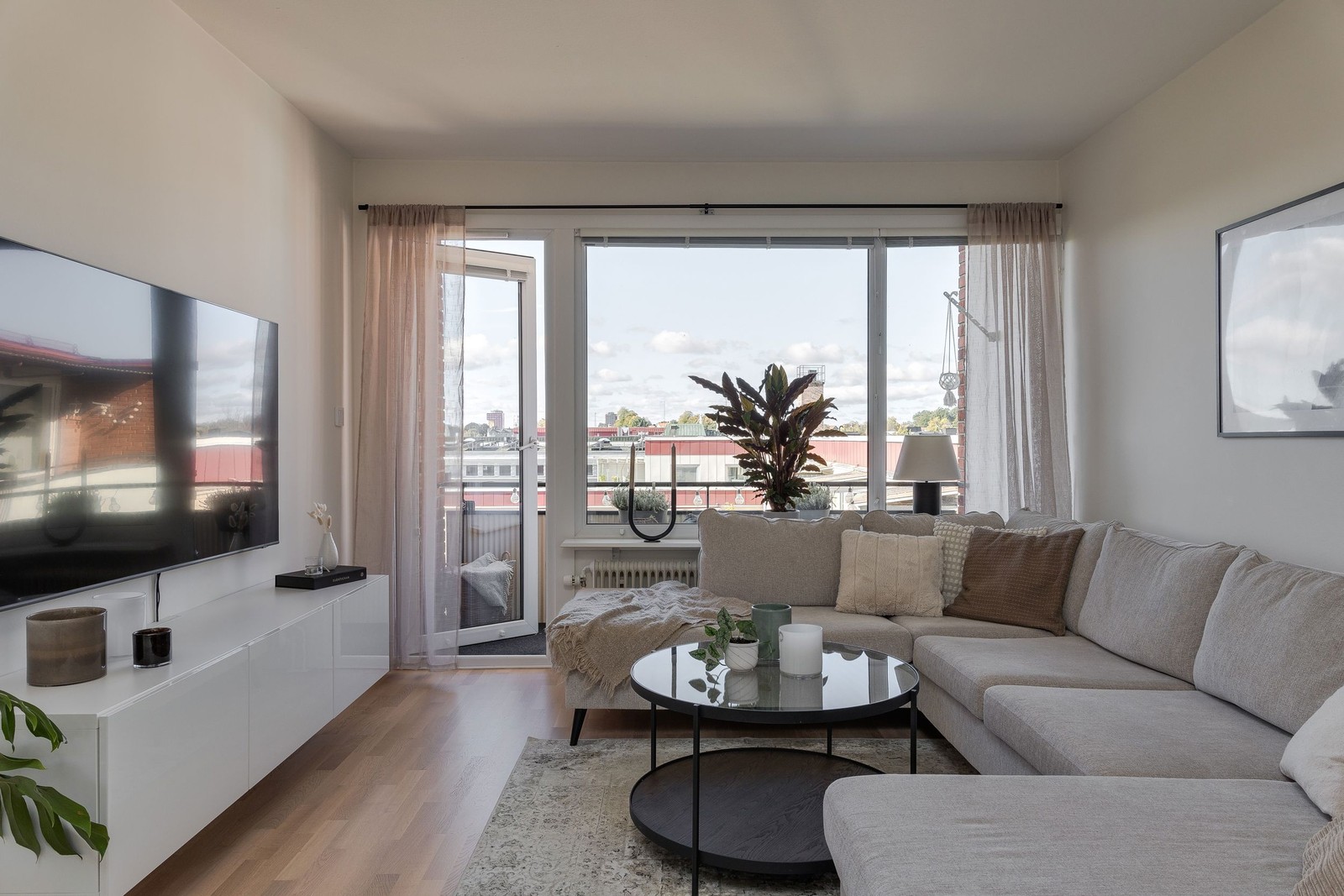 Varmt välkommen till denna ljusa och luftiga bostad med enhetlig färgsättning och charmiga vinklar. Den genomtänkta stilen genomsyrar lägenheten i form av ljuslaserat golv och vackra materialval. Bostaden har väldisponerade ytor och från vardagsrummet kommer ni ut till en mysig balkong i västerläge med utsikt över stadens takåsar. Det ljusa och ombonade köket är välplanerat och har utrymme för en trivsam matplats. I det generösa vardagsrummet har man ett härligt ljusinsläpp från stort fönsterparti och här finns goda möbleringsalternativ för både soffgrupp och matsalsmöblemang. De två rogivande sovrummen har charmiga snedtak som skänker karaktär och sovrummen erbjuder goda förvaringsmöjligheter. Bostadens badrum är stilrent och är praktiskt med tvättmöjlighet.