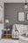 Badrum med ljusa färger och utrustat med WC, tvättställ samt ett spegelskåp med förvaring. Från badrummet nås även ett separat duschutrymme.