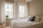 Bostadens sovrum med två fönster och garderobsförvaring. Här möblerar ni upp med en större säng, sängbord och ytterligare förvaringsmöbel. Behaglig kulör på väggar och golv skänker en avkopplande känsla.