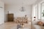 Vardagsrummet är målade i en behaglig nyans av vitt vilket ger en naturlig och lugn ton. Stora fönster släpper in rikligt med dagsljus och från rummet finns en dörr ut till balkongen. Rummet är naturligt integrerat med köket och skapar en öppen och social känsla. I vardagsrummet finns det plats för soffa och ett matbord. Det är en funktionell och trivsam plats som bjuder in till både avkoppling och social samvaro.