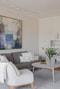 Vardagsrummet präglas av en ljus och stilfull interiör där den öppna planlösningen skapar generösa ytor för social samvaro. Det stora fönsterpartiet släpper in ett härligt ljus som lyfter rummet och de lättmöblerade ytorna ger flexibilitet för olika möbleringsalternativ och trevliga umgängesytor.