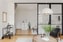 Snygga skjutdörrar av industriglas skärmar på ett effektfullt vis av sovdelen. Här finns även bra förvaringsmöjligheter i form av fyra garderober.