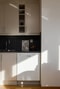 Hallen välkomnar med öppna ytor som leder vidare in mot allrummet. Hallen har en praktisk avhängningsyta och en smidig passage mot köket. Allrummet är rymligt och ljust med stora fönsterpartier som ger rikligt med dagsljus. Här finns plats för både soffa och matplats och sovalkoven avgränsas snyggt med en industriglasvägg som släpper igenom ljus och skapar en avskild, lugn sovhörna med två garderober. Köket har ljus inredning som kontrasteras snyggt av mörkt kakel och stänkskydd. Här finns gott om arbetsyta och förvaring. Matplatsen vid köket kompletteras med två extra garderober för ytterligare förvaring. Badrummet är helkaklat med vita väggar och grått klinkergolv.