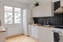 Köket har en vacker och harmonisk färgsättning som ger en inbjudande atmosfär. De öppna ytorna mot matplatsen skapar en naturlig övergång och ger möjlighet till härliga sociala stunder. De dubbla fönsterpartierna släpper in ett generöst ljus och bidrar till rummets ljusa och luftiga känsla. Här märks en äldre charm med klassiska detaljer och en tidlös karaktär, vilket ger köket en unik och personlig prägel.