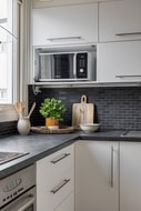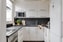 Köket är smart planerat och erbjuder smart funktion. Matplatsen ligger i direkt anslutning och ger plats för ett matbord. Köksinredningen i vitt kombineras bra med snygga färgval. Den maskinella köksutrustningen består av spishäll, spisfläkt, ugn, inbyggd mikrovågsugn sam kombinerad kyl och frys.
