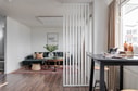 Hallens öppna ytor ger en fin vy över hela bostaden och skapar en välkomnande känsla. Här hittar ni en praktisk klädkammare för dold och organiserad förvaring. Hallens golv och väggfärg följer genomgående med in i resten av bostaden och skapar en enhetlig och stilren känsla.
