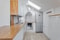Köket är utrustat med gott om förvaring och arbetsytor. Maskinparken är välutrustad med moderna bekvämligheter och ovan arbetsbänken sitter ett vitt stänkskydd. Den förlängda arbetsbänken skapar en barkänsla och öppnar upp för sittplatser. Köksdelen får ett fint ljusinsläpp från två fönsterpartier. Den maskinella köksutrustningen består av spishäll, spisfläkt, ugn, bänkdiskmaskin samt kombinerad kyl och frys.