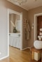 Trivsam hall med en fin och genomtänkt färgsättning som direkt skapar en varm känsla. Här möts ni av väl avvägda färgval som följer med vidare genom bostaden och ger ett fint helhetsintryck. Passagen in mot köket erbjuder både garderober och en flexibel yta som rymmer hatthylla, skoställ eller förvaringsmöbel. Från hallen ges dessutom trevliga vyer in mot vardagsrummet vilket bidrar till ett öppet och inbjudande första intryck.
