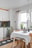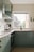 Köket är stilrent och ljust med hög funktionalitet och bra arbetsytor för er som önskar. Den maskinella utrustningen inkluderar spishäll, ugn, köksfläkt samt kyl och frys i fullhöjd. Den mörka arbetsbänken skapar en fin kontrast mot de vita kakelplattorna som används som stänkskydd. I köket finns även utrymme för ett matbord och det stora fönsterpartiet ger ett fint ljusinsläpp.