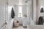 Badrummet är funktionellt med en stilren design. Badrummet nås från hallen och har ett insynsskyddat fönsterparti som släpper in naturligt ljus. Väggarna är helkaklade i smakfulla färger vilket ger ett fräscht och modernt intryck. Inredningen är stilren med moderna detaljer och praktiska lösningar inklusive en tvättmaskin för extra bekvämlighet. Vidare finns här tvättställ med kommod, WC och duschhörna.