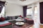 Generöst vardagsrum med väggar i en ljus ton och trägolv. Här finns plats för stor soffgrupp och matsalsgrupp. Från detta rum kommer ni ut till den inglasade terrassen.
