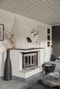 Vardagsrummet erbjuder generösa ytor med plats för både soffdel och matbord. Ena väggen är klädd i liggande träpanel som ger rummet en varm och ombonad känsla. De stora fönsterpartierna mot både fram- och baksidan släpper in rikligt med ljus. Härifrån når ni även trädgården på baksidan. En härlig förlängning av vardagsrummet under årets varmare månader.