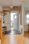 Öppen och välkomnande hall som har ett mörkt klinkergolv direkt vid entrén. Vidare på golvet ligger ett enhetligt parkettgolv som löper genom hela boendet. Den ljusa tonen på väggarna skapar en ljus och luftig känsla. Vid ingången finns det plats för en mindre sittmöbel och krukor.