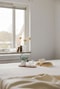 Sovrummet går i ljusa färger på både väggar och golv. Ett fönsterparti vetter mot gatan och ger fint ljusinsläpp under dagen. Här finns plats för en säng och förvaringen är smidigt löst med en skjutdörrsgarderob.