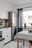 Rogivande sovrum i blå toner som kan möbleras upp med en dubbelsäng samt tillhörande möblemang. Garderobsväggen ger bra lösningar för klädförvaring. Fint fönsterparti ger ett dagligt ljusinsläpp.