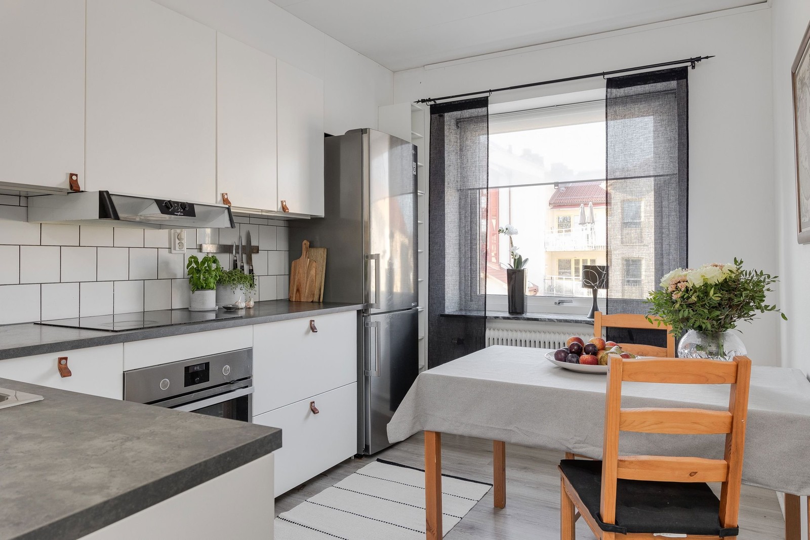 När ni kliver in bostadens hall finner ni generösa förvaringsmöjligheter med gott om plats för både ytterkläder och skor. Vidare in i bostaden möts ni av ett stilrent kök, smakfullt inrett med ljusa ytor. Köket är utformat på ett smart sätt där både förvaring, arbetsyta och matbord får gott om plats. Vardagsrummet är rymligt med stort fönsterparti som släpper in rikligt med dagsljus och skapar en trivsam miljö. Här finns gott om plats för både soffa och matbord. Bostadens sovrum erbjuder plats för en större säng där de rymliga garderoberna gör rummet både funktionellt och rofyllt. Badrummet som nås från hallen är utrustat med en duschhörna. Tvättmöjligheter finner ni i föreningens gemensamma tvättstuga som är belägen i källaren.