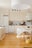 Köket har en tidlös vit inredning som skapar en ljus och trivsam atmosfär. De öppna ytorna mot vardagsrummet gör att rummet känns socialt och inbjudande. Här finns även utrymme för ett matbord. Den maskinella utrustningen består av diskmaskin, spishäll, ugn, mikrovågsugn, spisfläkt samt en kombinerad kyl och frys.