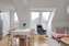 Härlig yta där kök och vardagsrum kombineras på ett yteffektivt och socialt sätt. Tack vare enhetligt vitmålade väggar och parkettgolv skapas en harmonisk och ljus känsla. Här finns det plats för loungeplats och matbord. Köket har en ljus inredning med mörk bänkskiva och vitt kakel. Det är utrustat med diskmaskin, induktionshäll, köksfläkt, inbyggd ugn och mikro. Den kombinerade kylen och frysen är i rostfritt utförande.