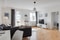 Trivsamt kök med en ljus känsla tack vare färgsättningen och ljusinsläppet från fönsterpartiet. Den mörka arbetsytan matchas snyggt med det vita kaklet. Köket är generöst både till arbetsyta och förvaringslösningar. Rummet rymmer även en matplats. Den maskinella köksutrustningen består av ugn, spishäll, spisfläkt, inbyggd mikrovågsugn, integrerad diskmaskin samt kyl och frys i fullhöjd.