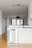 Charmigt och snyggt U-kök utrustat med vita fronter och aluminiumhandtag samt naturligt ljus från de båda fönstren. Svart kaklat stänkskydd vid diskbänk och vita större kakelplattor upp till tak vid spisen. Bänkskivan följer köket hela vägen och fungerar som avlastning och ger även utrymme för en matplats.